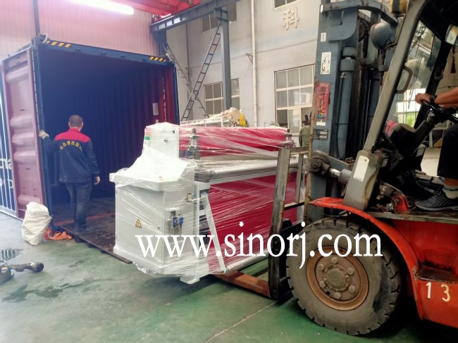 發(fā)往南美的lvt地板生產(chǎn)線spc地板設(shè)備裝柜中